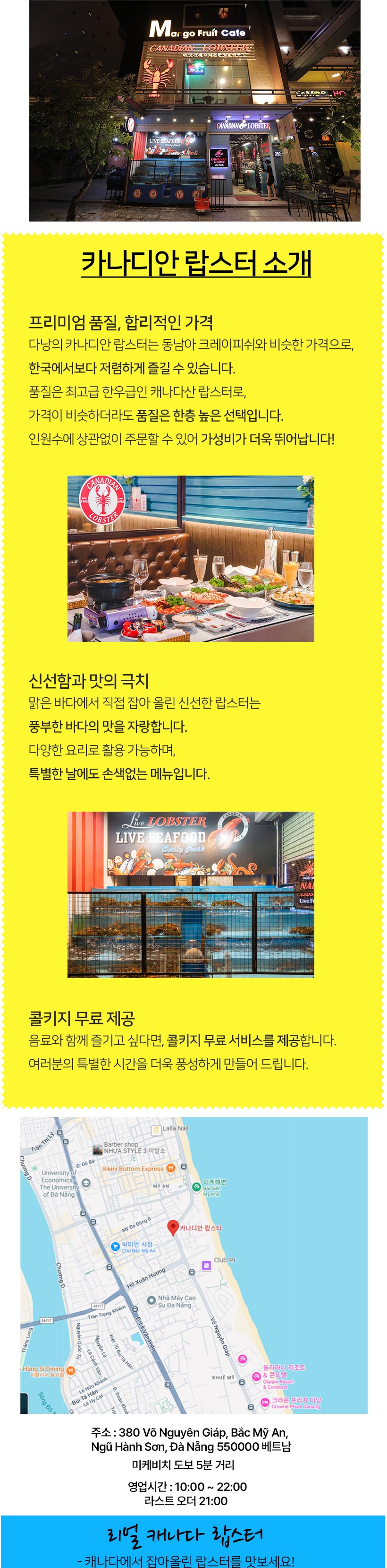 신선한 랍스터를 한국보다 저렵하게 먹을 수 있어 좋았어요~ 미케비치 앞이라 찾기도 싶고 고급진 식사로 가족들이 만족했어요.