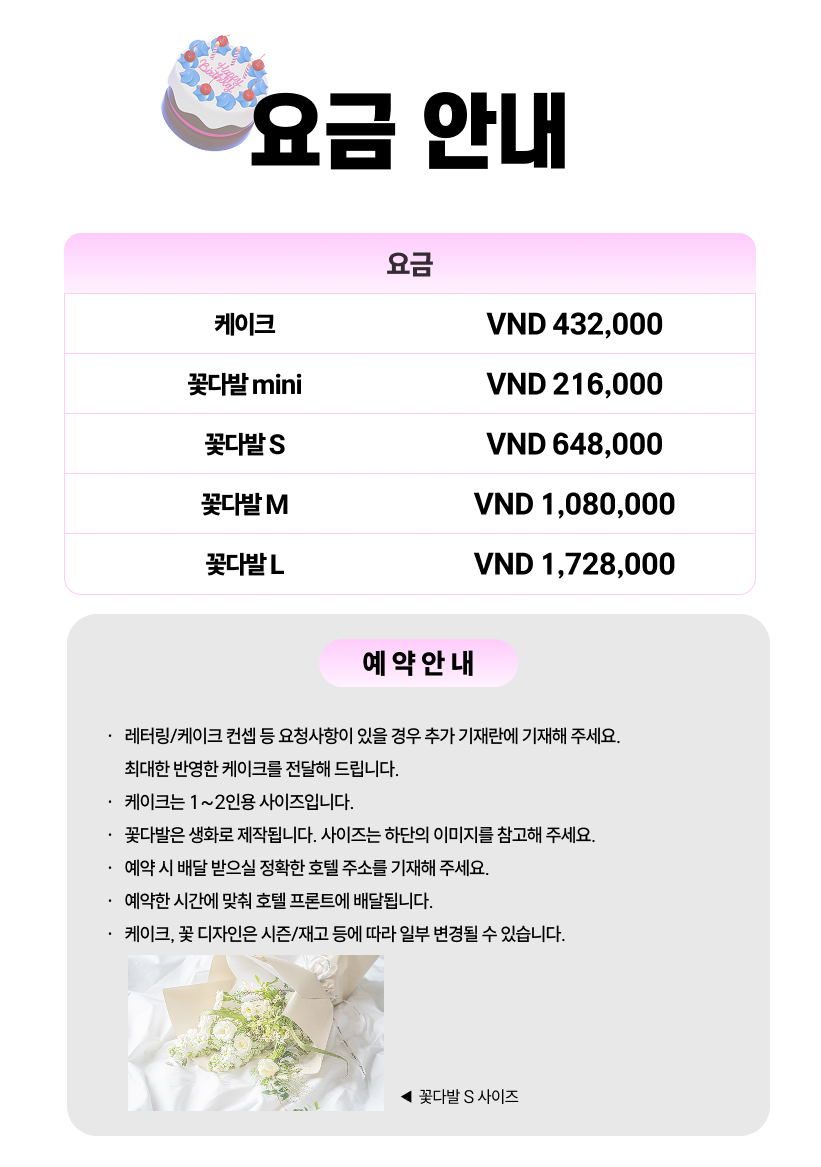- 꽃, 케이크 디자인은 시즌/재고 등에 따라 일부 변경될 수 있습니다.