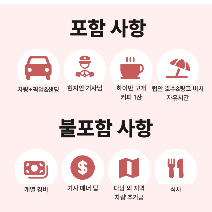 - 다낭 시내 이외 지역 픽드랍 추가금