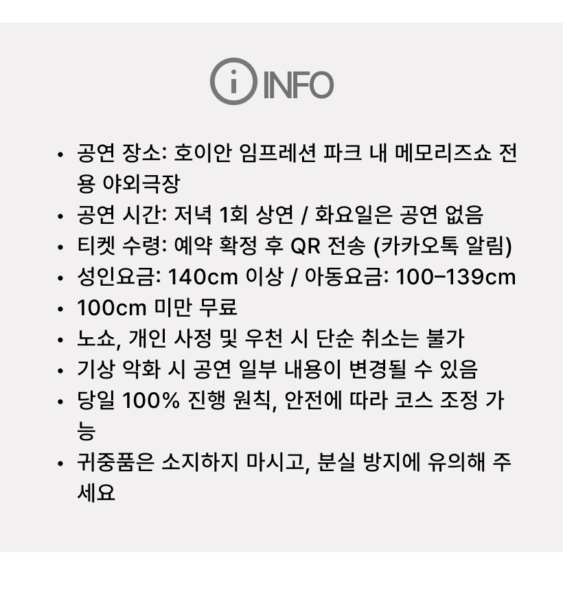 - 귀중품 및 현금등의 분실사고와 개인의 안전사고에 대해 각별히 유의해주시길 바랍니다.