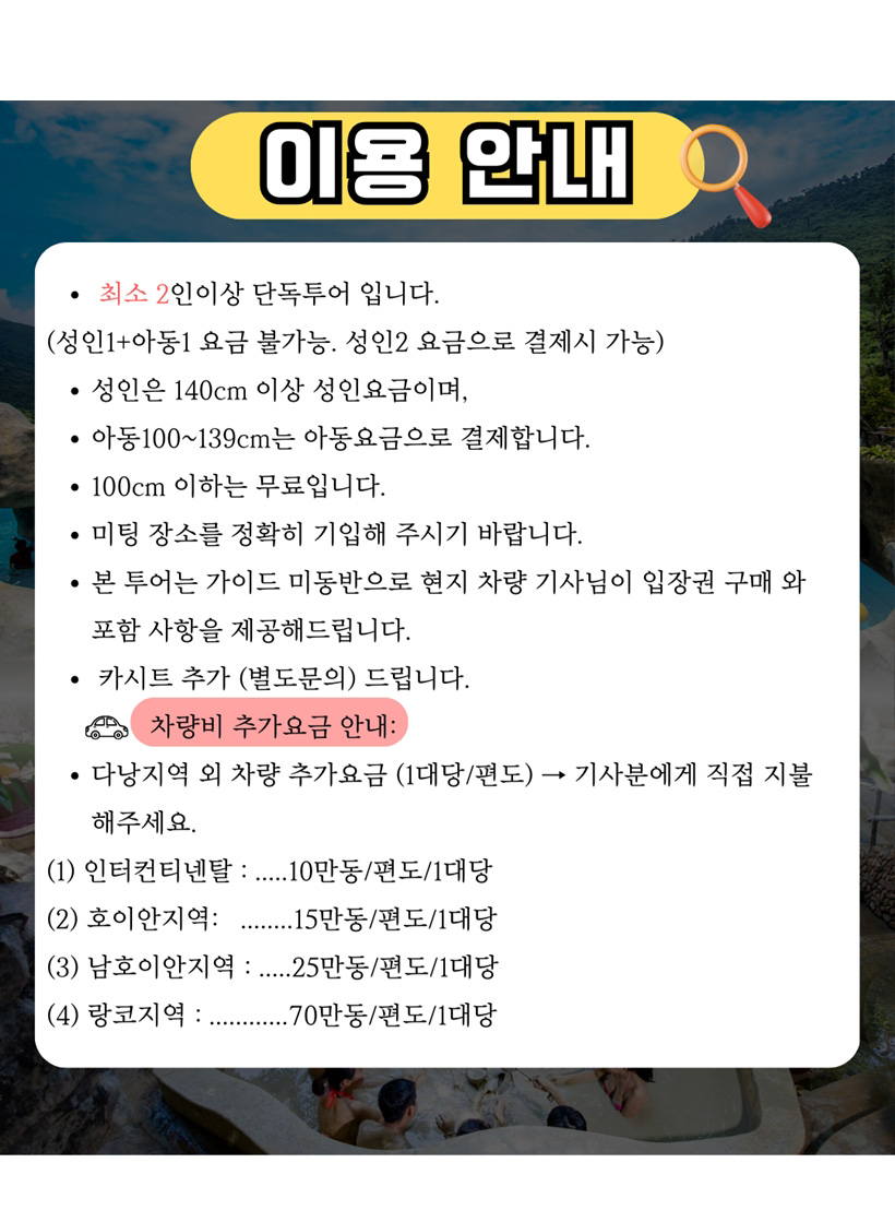- 다낭 시내 외 호텔의 경우 추가요금 현장지불