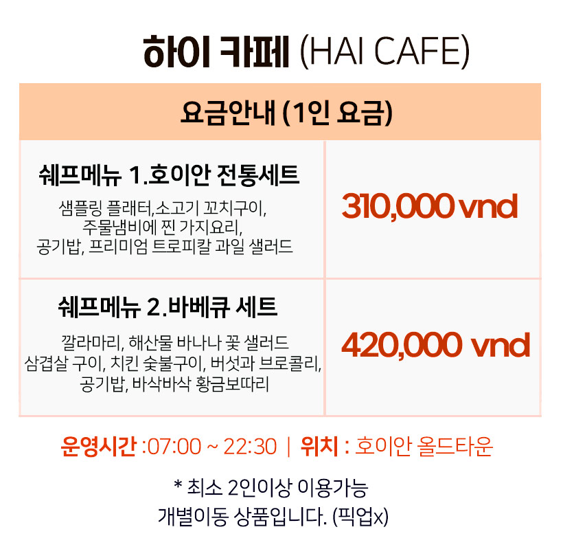 모든 메뉴는 2인 이상 이용 가능합니다.