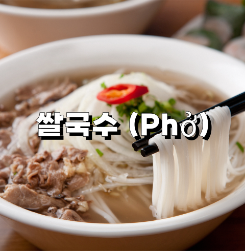 쌀국수는 북부 지역 하노이의 Phở Bò'(소고기 쌀국수)와