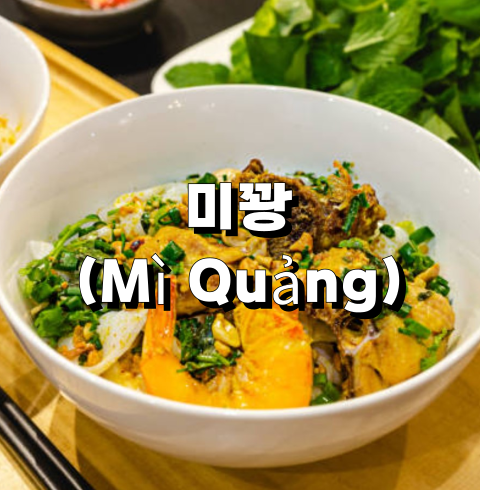 중부 다낭 지역에서 유명한 미꽝은 넓적한 쌀국수 면에