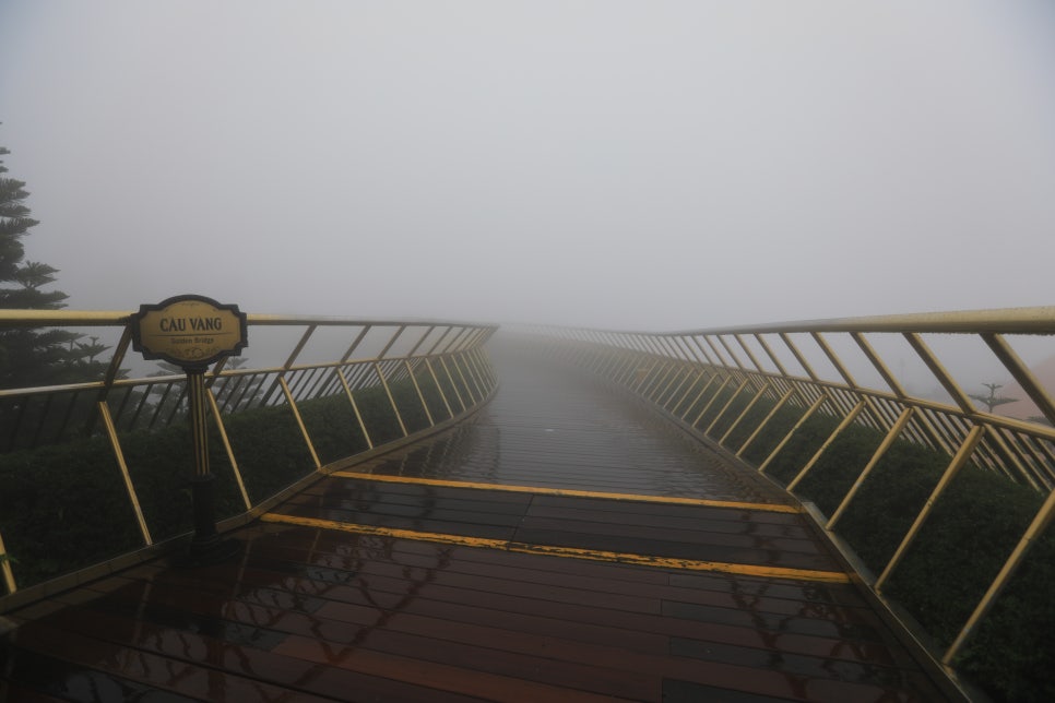 황금빛으로 빛나는 이 다리는 바나힐의 상징적인 장소로,