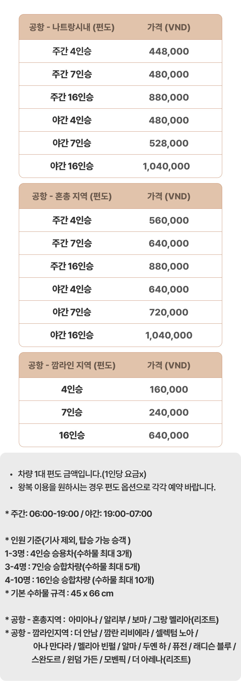 *차량 1대 금액 기준입니다. (1인당 금액X)