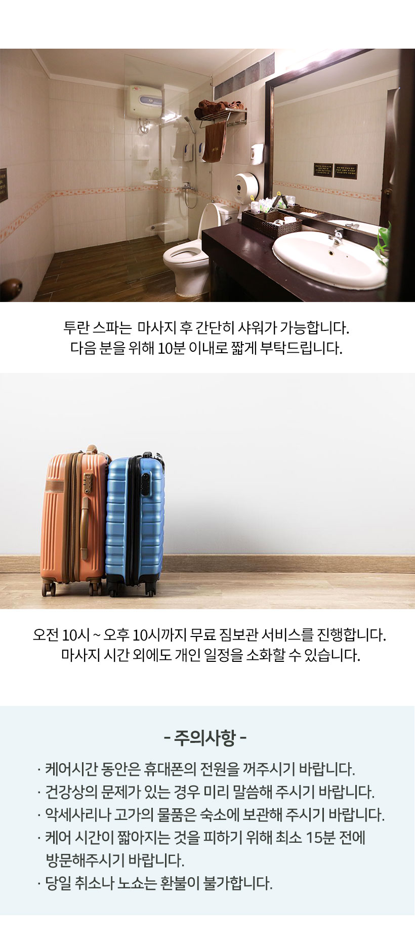 - 이용당일 취소,No Show : 전액 환불 불가