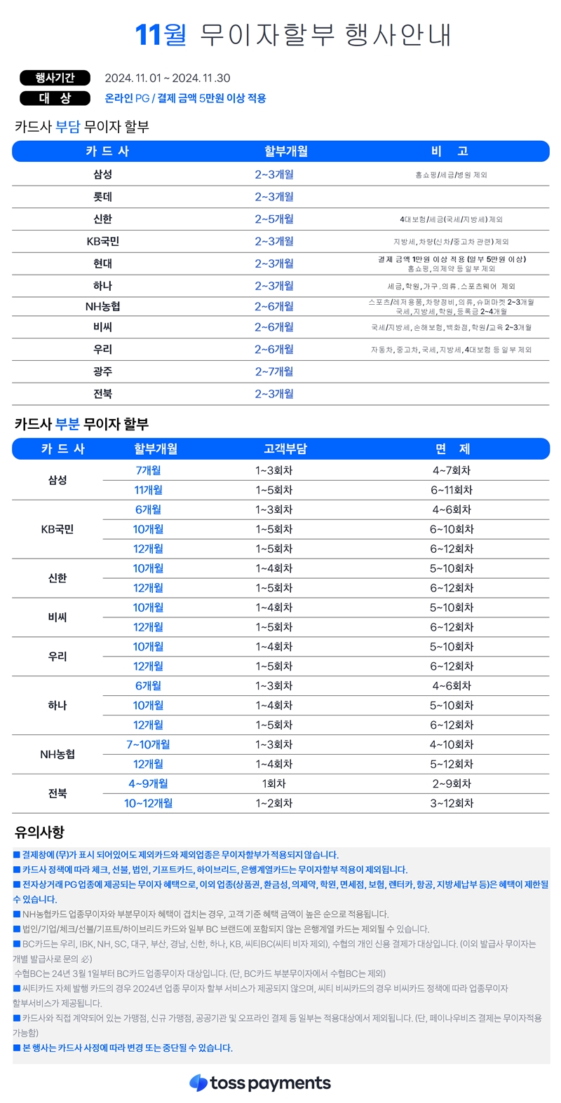 2024년 11월 무이자 할부 행사 안내